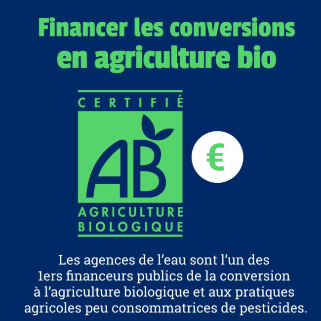 En France, environ 80% des conversions agricoles en bio sur les aires d’alimentation des captages sont co-financées par les agences de l’eau.