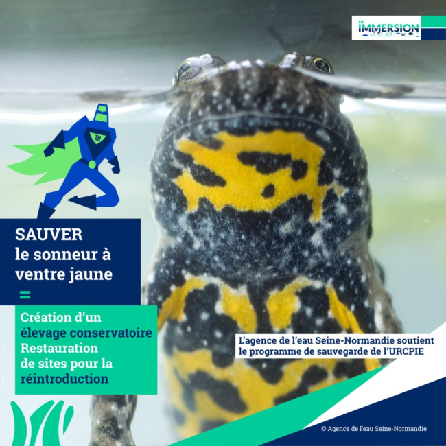 Suite à sa redécouverte, le site de reproduction a été inclus dans le réseau Natura 2000, programme européen de conservation de la biodiversité. L’espèce recule dans de nombreux pays européen, plusieurs programmes de sauvegarde sont en cours. L’Union Régionale des Centres Permanents d’Initiatives pour l’Environnement (URCPIE) de Normandie porte un programme de sauvegarde du Sonneur à ventre jaune. L’agence de l’eau Seine-Normandie soutient cette action.